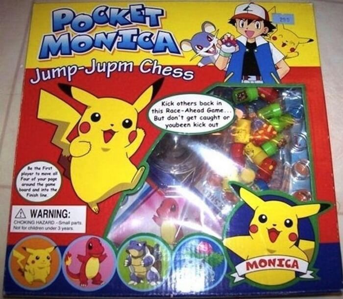 Egészen hasonlít az eredetire a következő Pikachu, leszámítva, hogy Zsebmónikának hívják. A játék igényességét a dobozon virító elírás (jupm) is remekül illusztrálja.