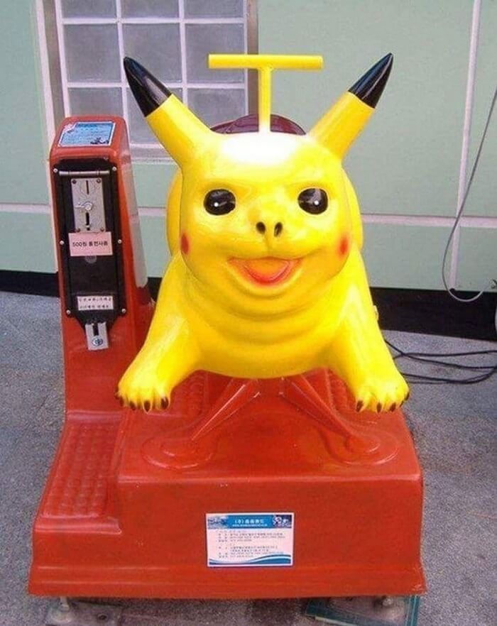 Semmilyen szexuális vonatkozású gondolat ne jusson eszünkbe az eksztázist sugárzó fejű Pikachuról, akire némi pénz bedobása ellenében rá lehet ülni.