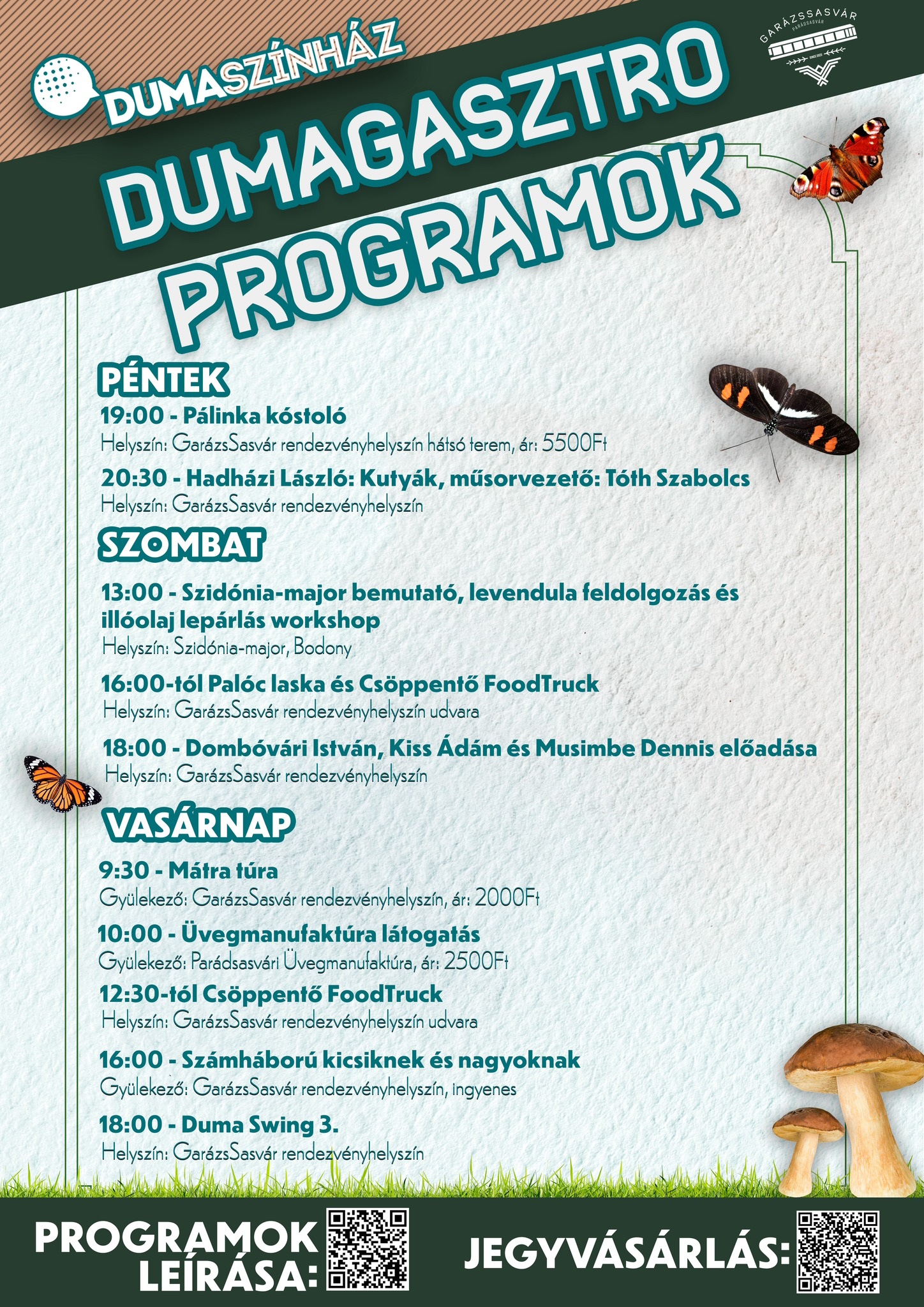A részletes leírásért és további információkért keresd a GarázsSasvár aloldalát vagy a helyszíni Facebook-eseményeket!